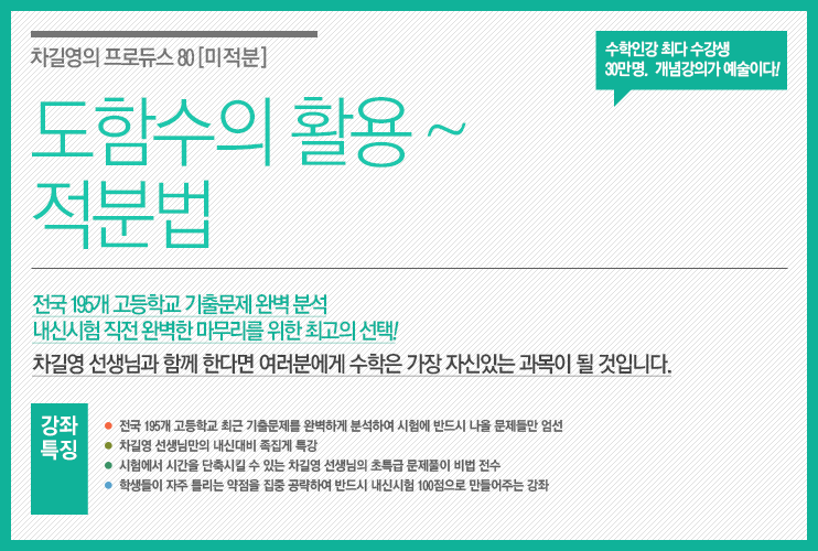 | 교재 | 고2/고3_프로듀스 80 (미적분2: 도함수의 활용) |